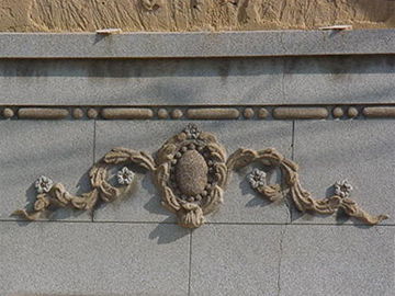 上の写真を撮ったところのすぐ側の倉庫のシャッターの上に妙に凝った装飾があるのを発見。注意してみると,島のあちこちでこのような飾りを見ることができます。 |